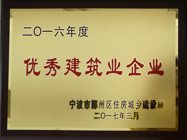“2016年度寧波市鄞州區(qū)優(yōu)秀建筑業(yè)企業(yè)”榮譽