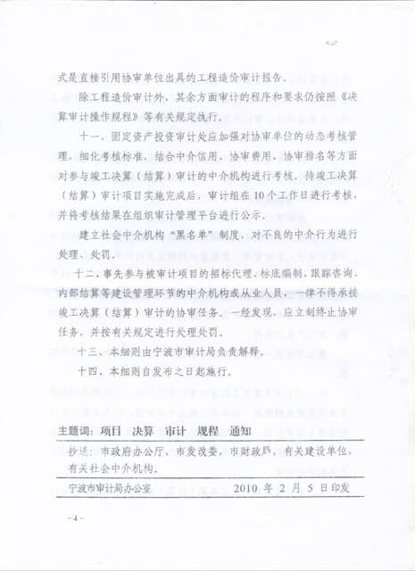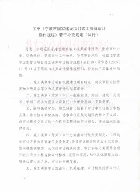 寧波市審計局辦公室關(guān)于印發(fā)《<寧波市國家建設(shè)項目竣工決算審計操作規(guī)程>若干補充規(guī)定(試行)》的通知-行業(yè)新聞-中冠咨詢-中冠工程管理咨詢有限公司