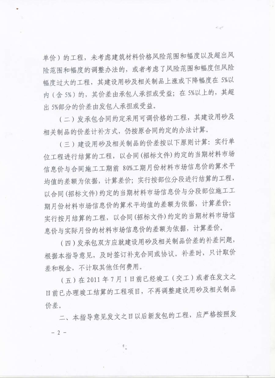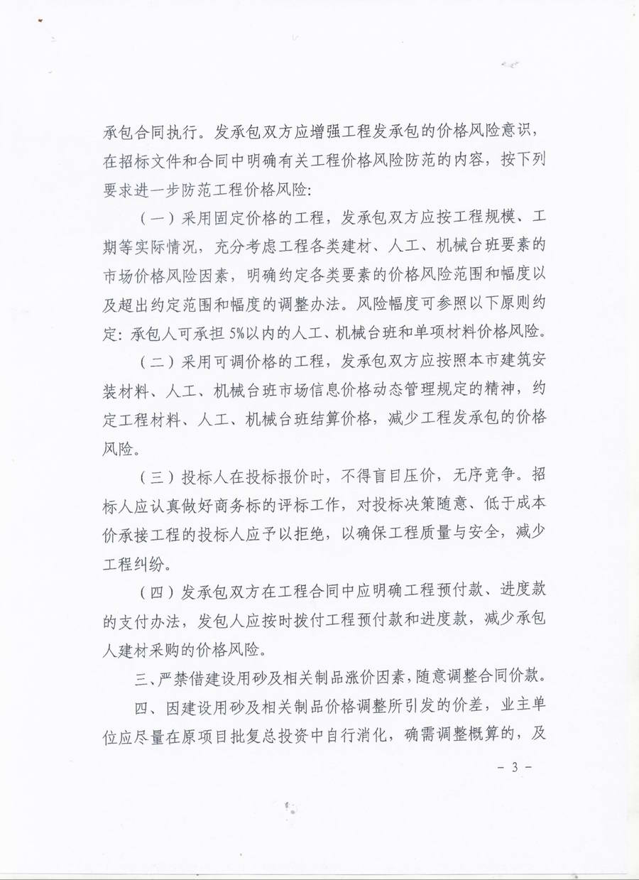 關(guān)于調(diào)整工程建設(shè)用砂及相關(guān)制品結(jié)算價格加強(qiáng)建設(shè)工程要素價格風(fēng)險控制的指導(dǎo)意見