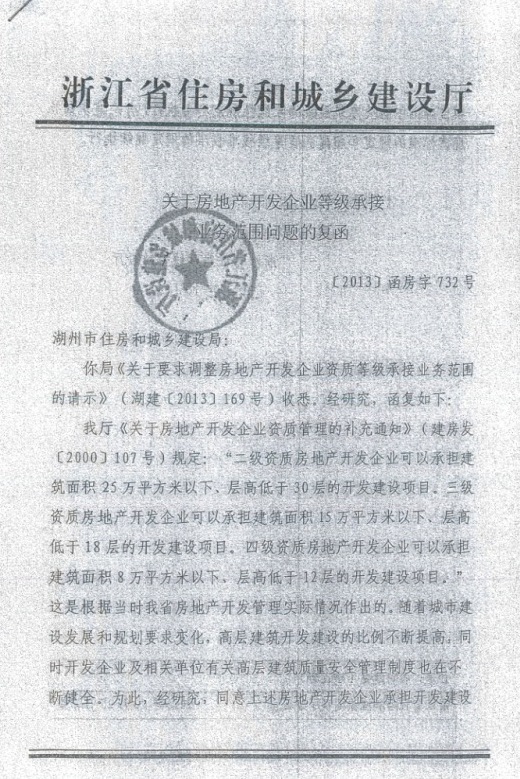 關(guān)于房地產(chǎn)開發(fā)企業(yè)等級承接業(yè)務(wù)范圍問題的復(fù)函
