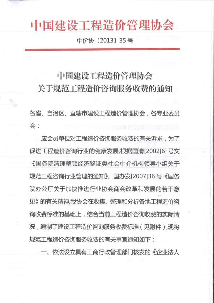 中國(guó)建設(shè)工程造價(jià)管理協(xié)會(huì)關(guān)于規(guī)范工程造價(jià)咨詢服務(wù)收費(fèi)的通知