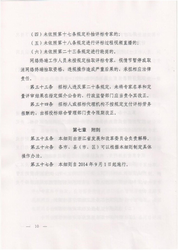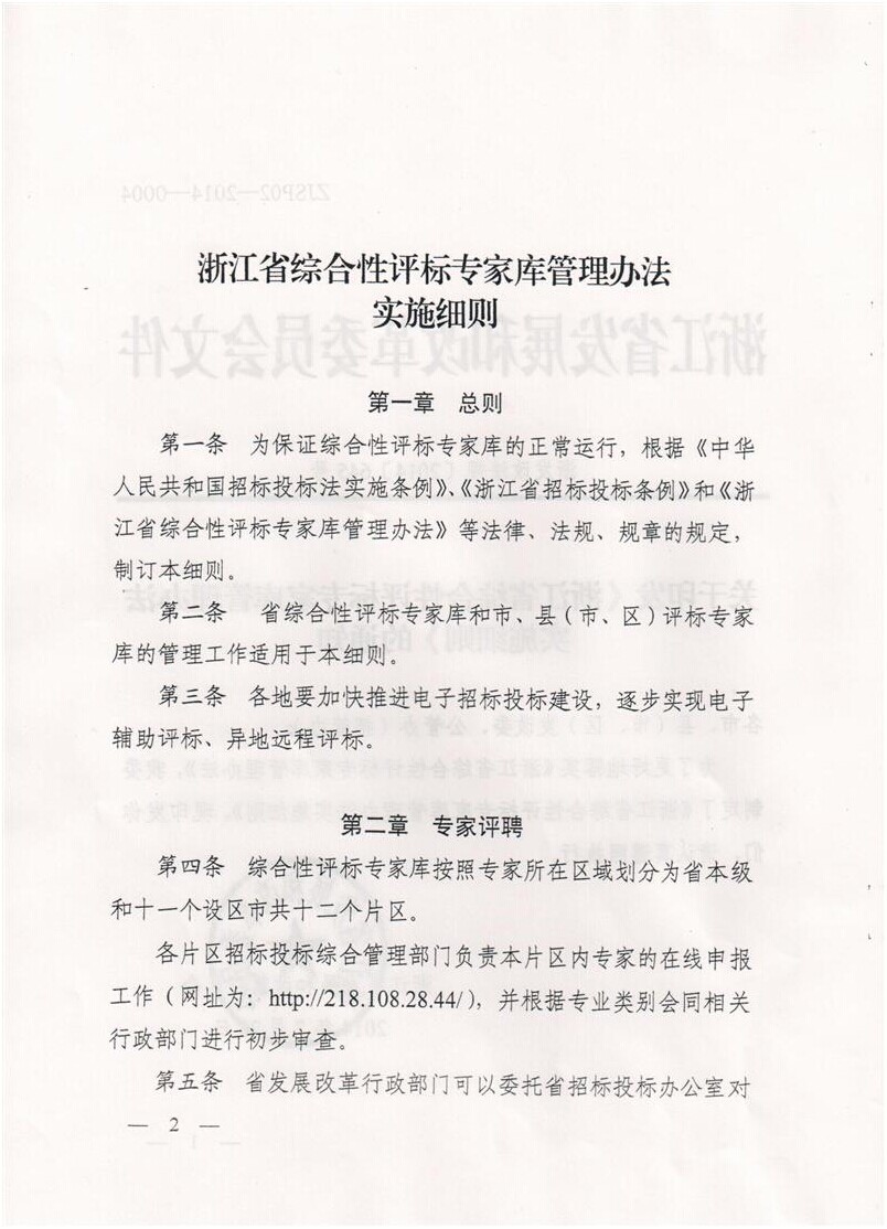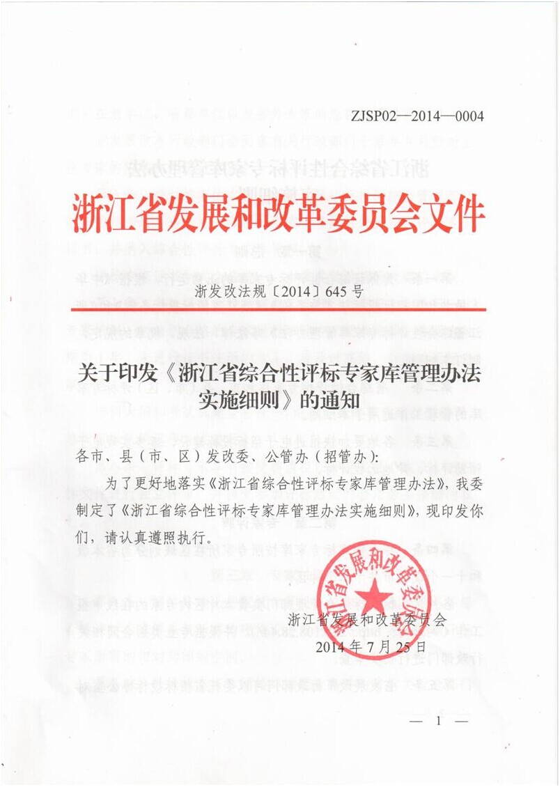 關(guān)于印發(fā)《浙江省綜合性評標(biāo)專家?guī)旃芾磙k法實(shí)施細(xì)則》的通知 (浙發(fā)改法規(guī)[2014]645號)